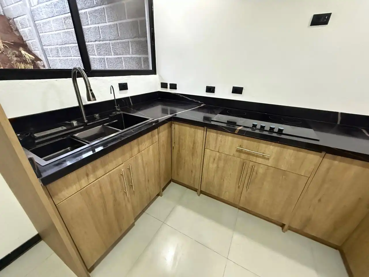 🍳 Cocina con muebles modernos, sobres de cuarzo y cocina empotrada, pensada para brindar comodidad y durabilidad en el día a día.